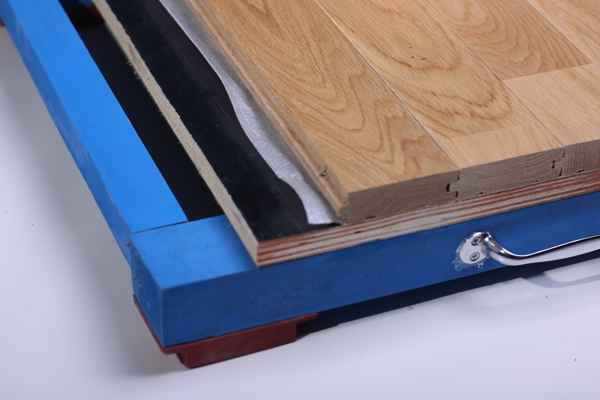 十二、體育木地板面板安裝:在完成上述工作量后,可進行面板安裝,面板的安裝基本要求是縱向是場館的長面,側向應是場館的寬面,以減少地板伸縮膨脹率。
