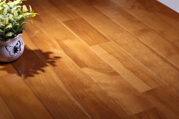 地板正面漆膜厚,吸水膨脹小,背面漆膜薄吸水膨脹多。